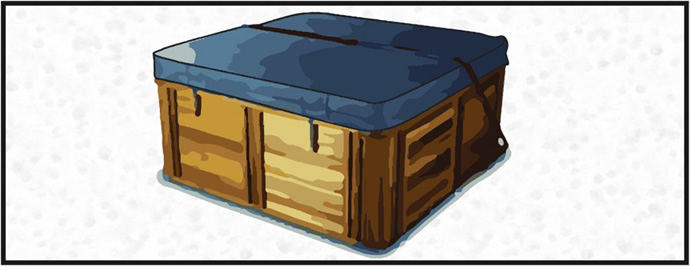 Un telo proteggerà la vasca idromassaggio dal vento al fine di garantire che la pioggia e la neve sciolta non entrino nella vasca idromassaggio durante l’inverno.